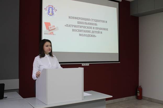 25 ноября 2016 г. в рамках V Международной научно-практической конференции по проблемам правового и патриотического воспитания детей и молодежи состоялась конференция студентов и школьников «Патриотическое и правовое воспитание детей и молодежи».
